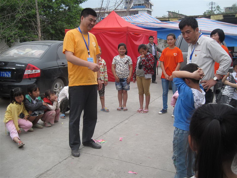 刘伟老师(左)在灾区开展团体辅导活动 |