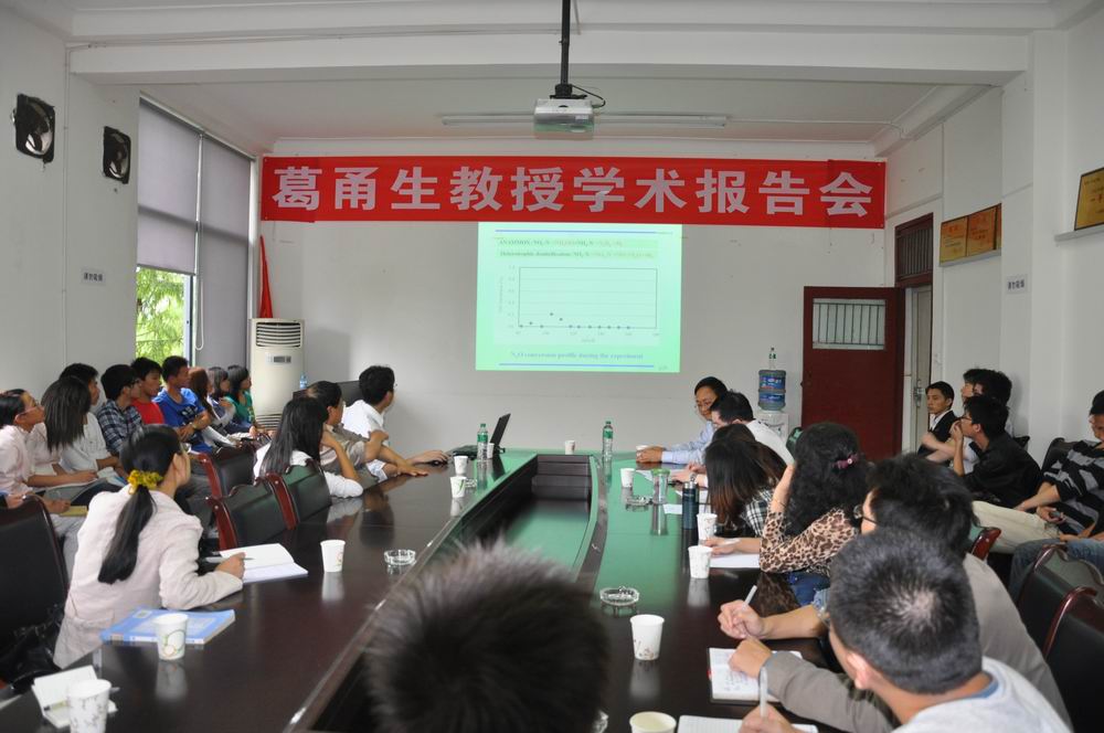 9月18日下午3:00,由能源与环境学院、科技处、国际合作与交流处主办的、针对我校环境工程专业的学术报告会在能源与环境学院会议室举行。此次报告会由留学日本的葛甬生博士应邀就“废水的高级处理及脱氮技术与动向”作了专题报告,能源与环境学院副院长李庆刚、谷晋川、宋文武,环境工程专业相关的专业教师和部分2008级环境工程专业的学生及研究生聆听了报告。 学术报告会现场 |