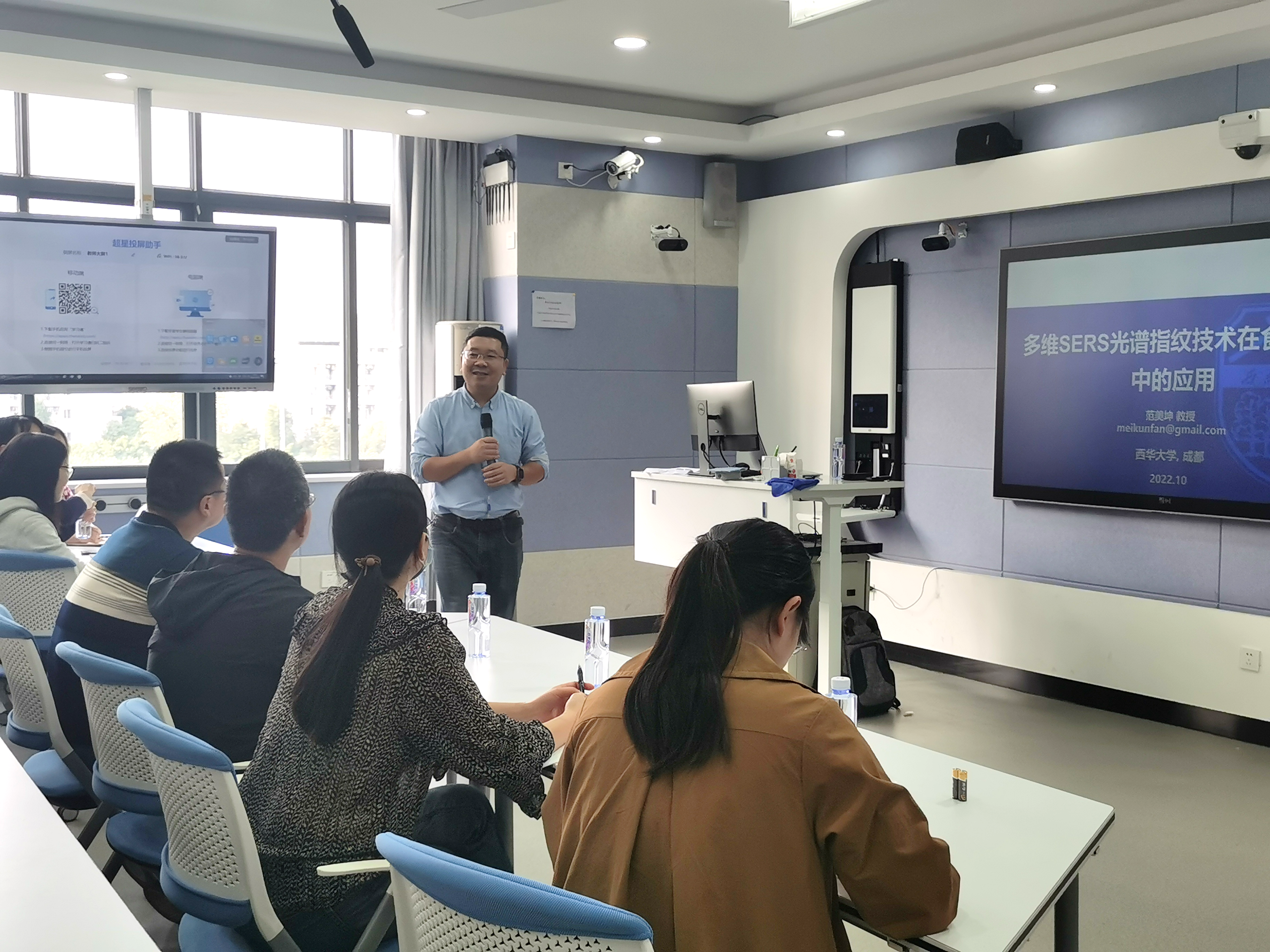10月20日,西南交通大学范美坤教授在5B-512为我校师生带来以“多维SERS光谱指纹技术在食品领域的应用”为题的报告。食品与生物工程学院院长唐洁教授、副院长饶瑜教授共同主持本次会议,食品与生物工程学院和理学院近百位师生参与学习和交流。