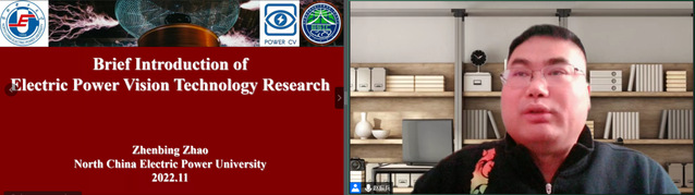 来自华北电力大学的赵振兵教授,进行了主题为“电力视觉技术研究进展”的精彩报告。赵振兵教授介绍了电力视觉的概念和技术框架,重点介绍了基于领域知识和深度学习的绝缘子缺陷、硬件配件和输电线路螺栓缺陷的检测方法,此外,赵教授还简要介绍了变电站设备过热检测、漏油评估、金属腐蚀检测、仪表缺陷检测和指示状态检测等方面的最新研究进展,并指出了相关领域所存在的主要技术问题。