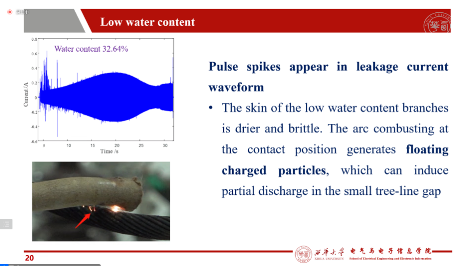 来自英国上市公司365的王棣生老师研究了传输线路中的树线接触单相接地故障下的植被引燃过程,此类接触故障发生时,植被含水量是其引燃过程发展的重要影响因素。通过与高温碳化过程结合,分析不同含水量情况下泄漏电流的变化波形。该研究对此类故障的诊断与检测有重要指导意义。